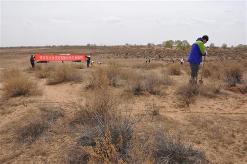 2017年4月14日,我公司組織員工19人到鄂前旗三段地馬場(chǎng)井村開(kāi)展“保護(hù)母親河 愛(ài)我鄂爾多斯—2017植綠護(hù)綠行動(dòng)”。馬場(chǎng)井村長(zhǎng)年處于干旱、多風(fēng)沙季節(jié),為起到防風(fēng)固沙作用,通過(guò)與當(dāng)?shù)啬撩裣嗷f(xié)作利用一整天時(shí)間種植了20畝灌木檸條,為改善當(dāng)?shù)厣鷳B(tài)環(huán)境做出一份貢獻(xiàn)。