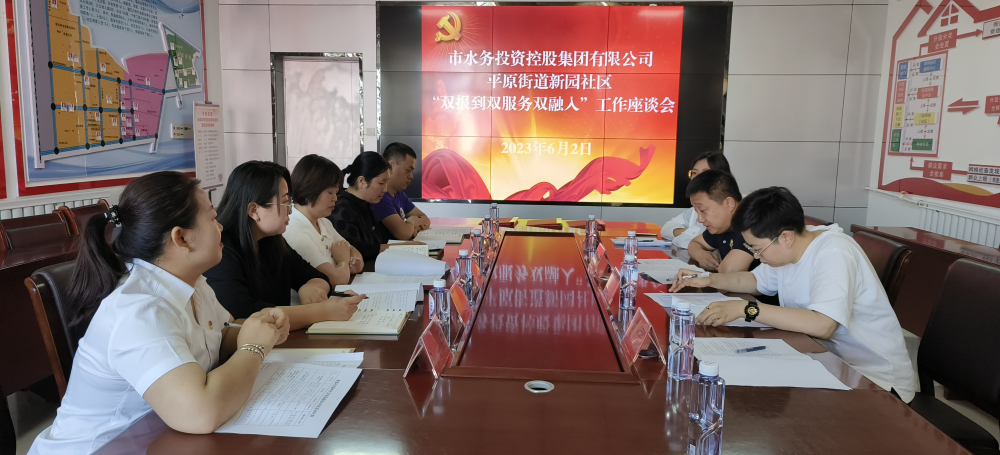 為深入貫徹落實黨的二十大精神,推動黨員干部“雙報到雙服務(wù)雙融入”工作走深走實,6月2日,市水投集團(tuán)機關(guān)黨支部書記于永莊帶隊深入達(dá)拉特旗新園社區(qū)走訪調(diào)研并召開座談會。